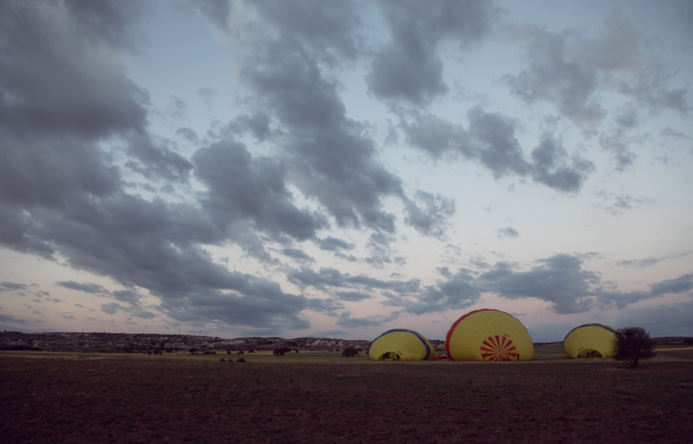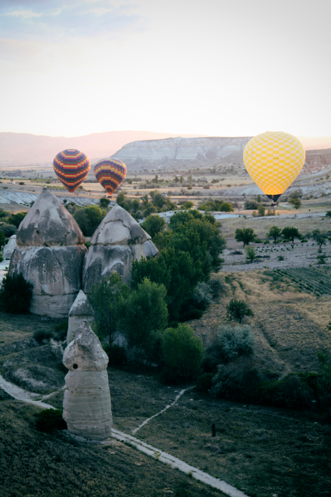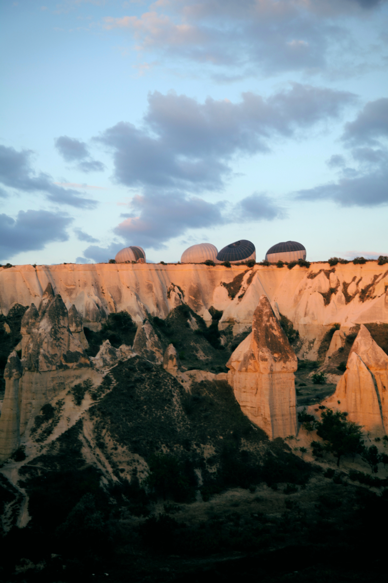 Hot air balloons are probably the most popular way to ‘see’ Cappadocia, so there were loads of balloons all launching at roughly the same time, just as the sun was slowly beginning to peek through. This made for some charmingly surreal views against a rapidly changing sky.