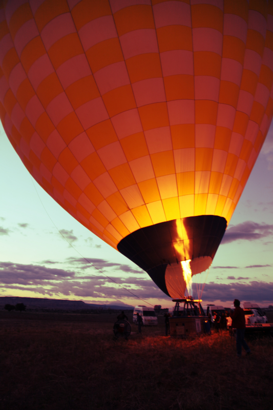 As luck would have it that day, the wind gods smiled upon us, and we were promptly shuttled to the take-off site, where we found ourselves at close quarters with the massive, fascinating objects that are hot air balloons.